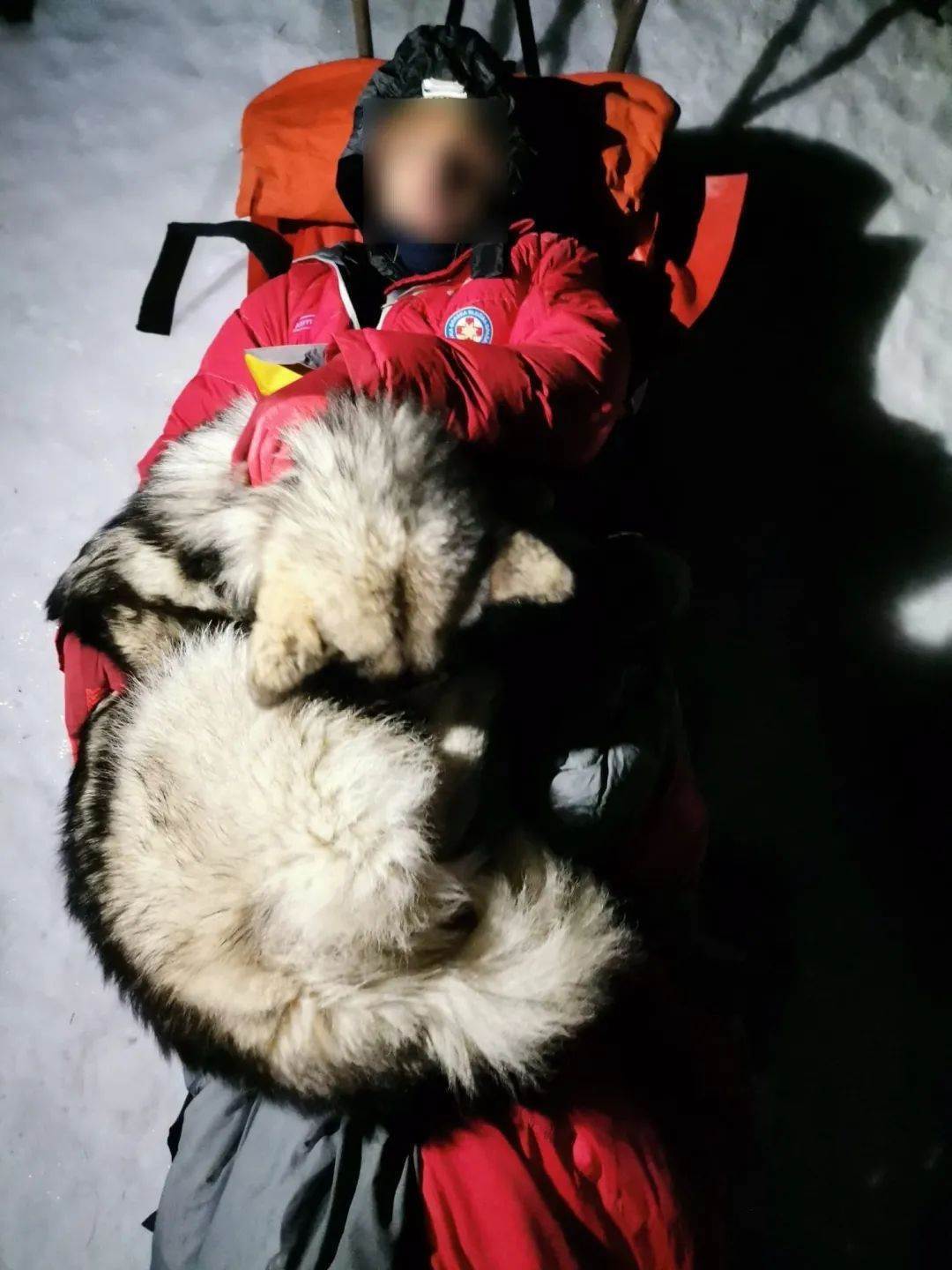只見North一直守護著主人,將自己蜷縮起來趴在主人身上,將溫暖傳遞給主人。它一邊給主人取暖,一邊耐心等待救援的到來。