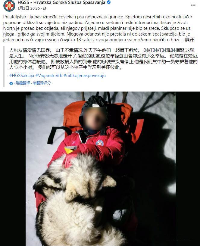 1月2日,克羅埃西亞的一名網友挑戰自我去登山,於是他做足準備,帶上阿拉斯加 North(諾斯)一起出發。
