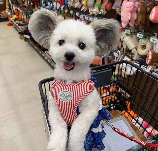 鏟屎官有空就會帶狗狗出去遛彎,還會帶Goma去超市購物,每次出門都會引起路人圍觀。