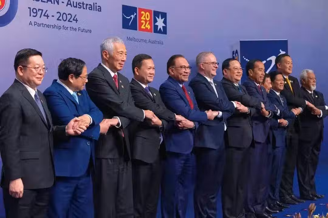 2024年3月李顯龍出席澳大利亞-東盟特別峰會領導人全體會議時與其他領導人合影留念