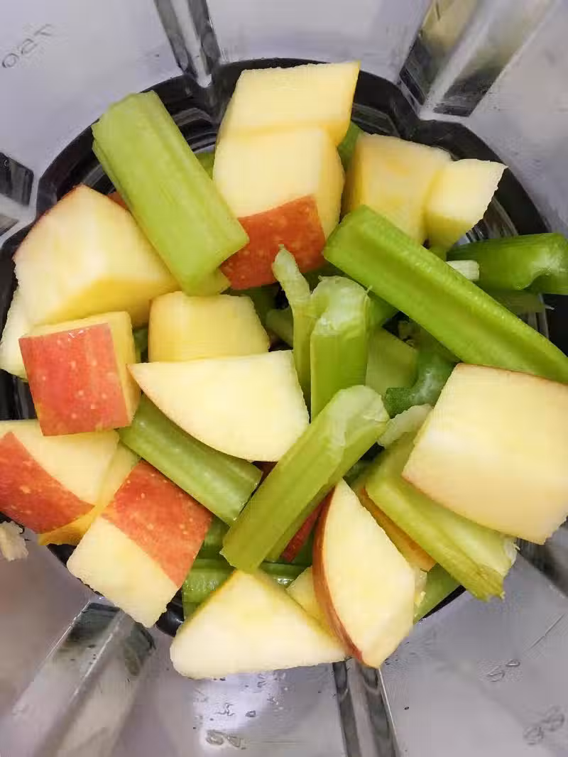 食材:蘋果半個、芹菜兩根、溫水350ml