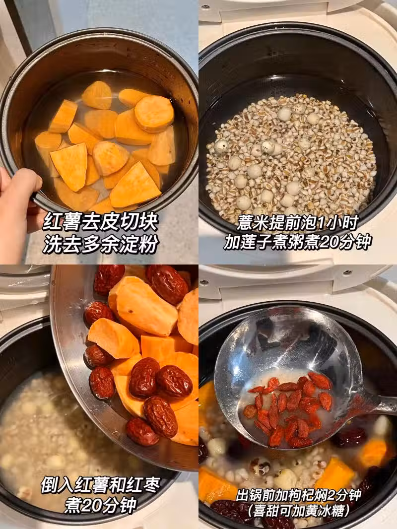 🌈食材:紅薯,薏米,紅棗,蓮子,枸杞,紅糖