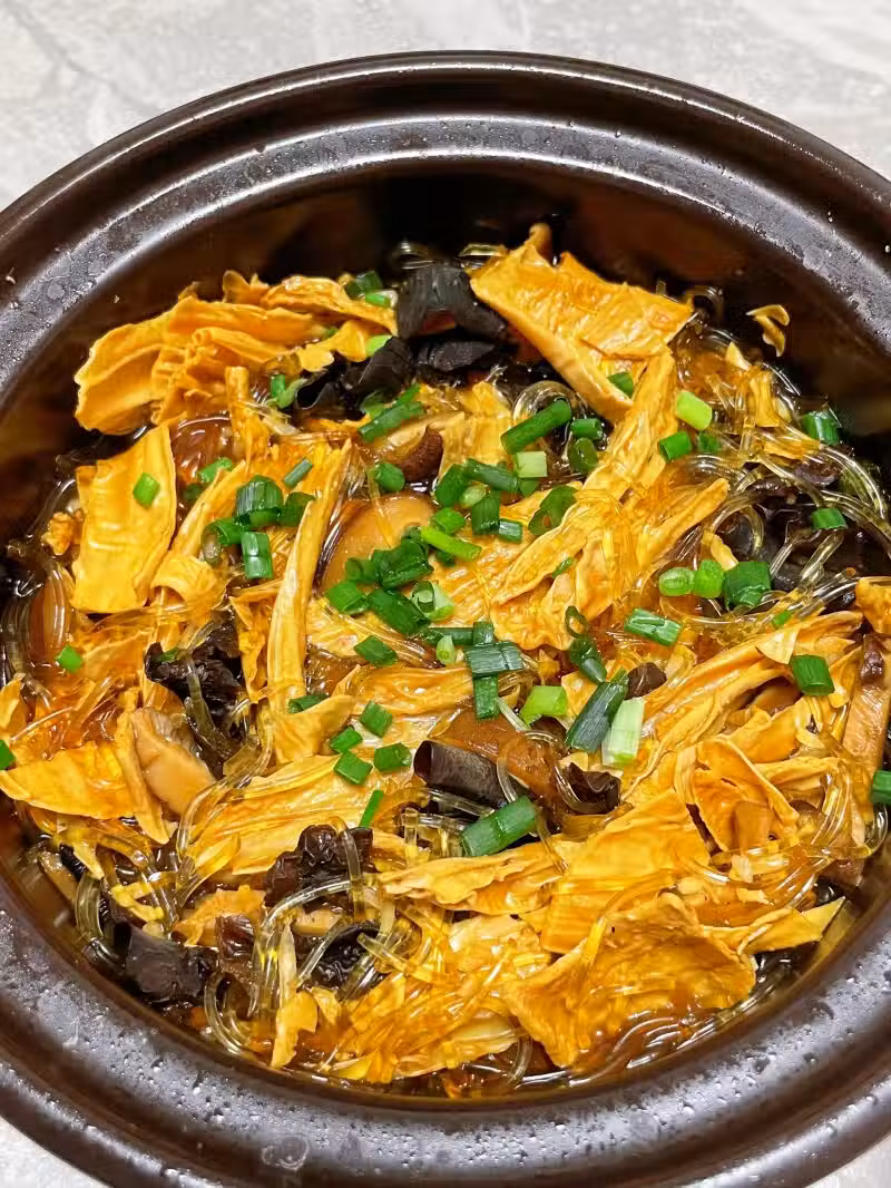 這道菜的靈魂在於腐竹吸汁和菌菇提鮮,輕鬆做出「比肉香」的素齋!可以根據季節搭配時蔬,比如春天加筍片,秋天放栗子,自由發揮~