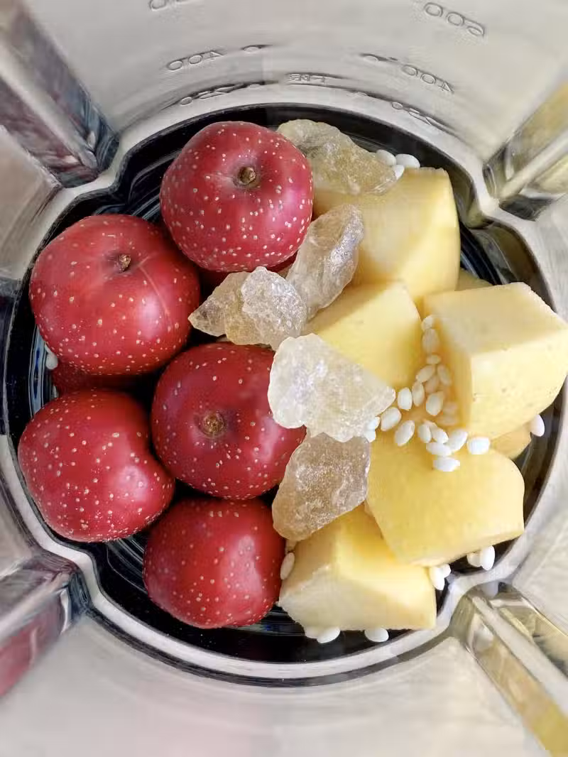 🍎食材:山楂60g+蘋果1個+糯米 20g + 冰糖10g+清水600ml(怕酸可多加點糖)