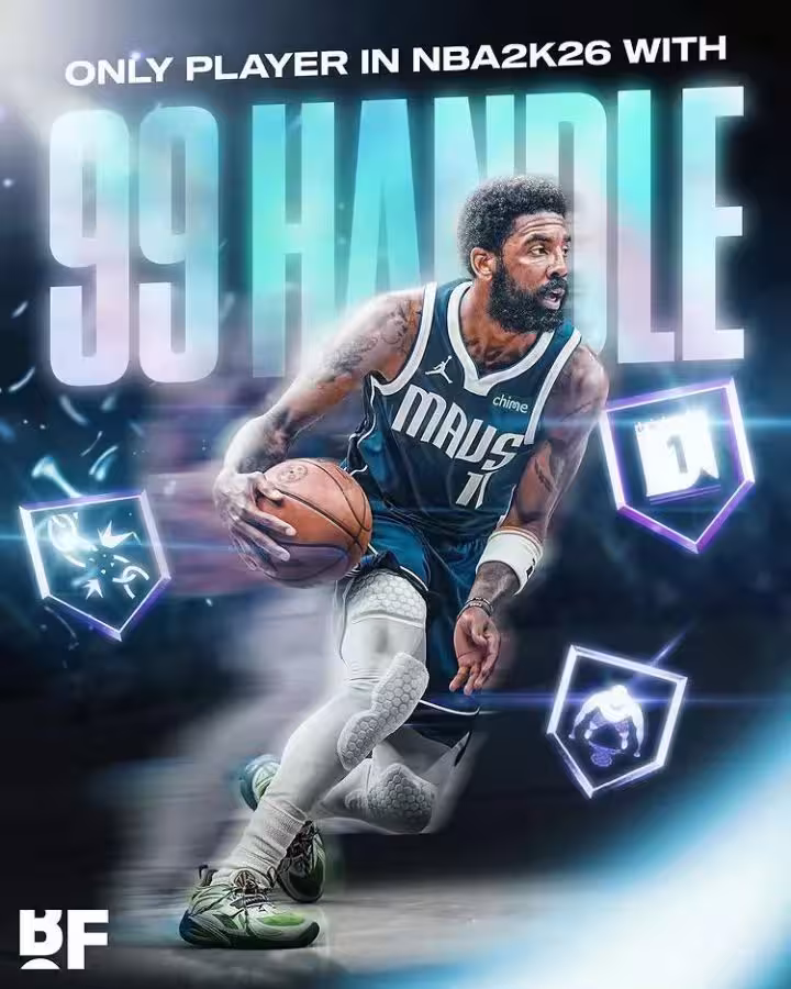 毋容置疑的控球真神,歐文是NBA2K26中唯一一名運球能力值達到99的球員。