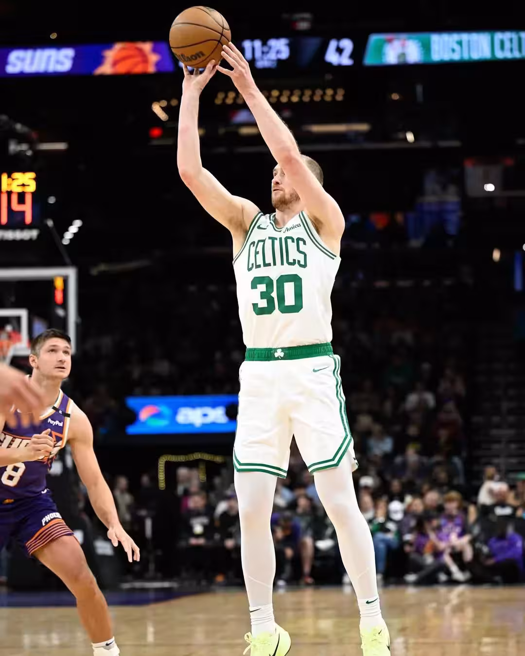 2024-25賽季,豪澤為凱爾特人打了71場比賽,其中19場首發。場均出戰21.7分鐘,得到8.5分3.2籃板0.9助攻0.6搶斷0.3失誤,投籃命中率45.1%,三分命中率41.6%,罰球命中率100%。哪怕送不走豪澤,凱爾特人還有後手……