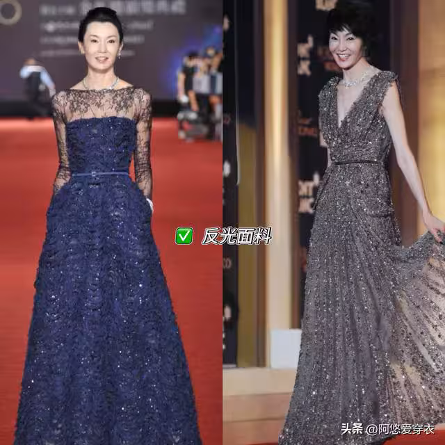 別總是穿普通的棉質、麻質,它們的舒適度雖然不錯,但結合深色的衣服,看起來可能會比較單調沉悶;我更建議大家換成有光澤感的面料,例如絲綢、緞面,或者加入亮片點綴,既提亮了膚色,又增添了幾分華麗貴氣。