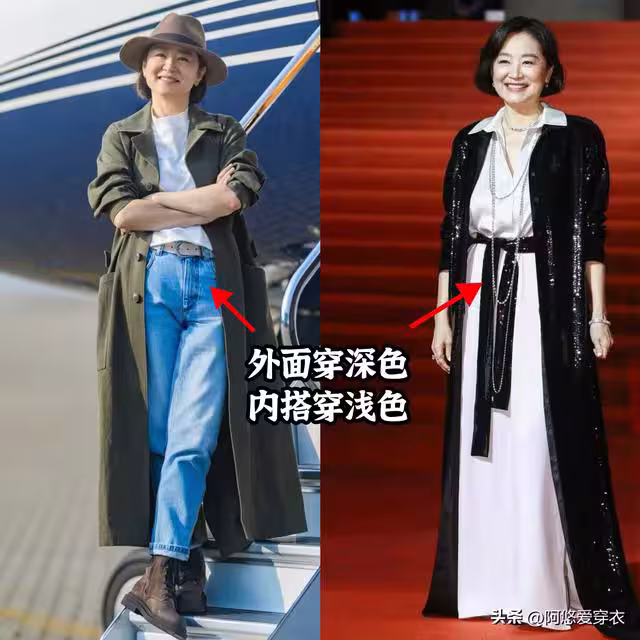 ②淺色的衣服自帶減齡感,深色看著更成熟