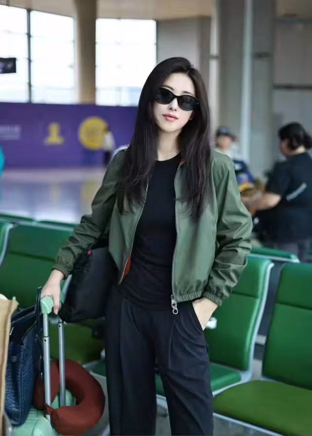 飛行員夾克自帶復古濾鏡,最早是給航空人員設計的,硬朗線條藏著不羈勁兒。朱珠選的軍綠色款,顏色襯得人超有氣場,還特適配初秋氛圍。短款設計更絕,能夠悄悄拉高腰線,哪怕搭寬鬆褲子,也不會顯矮,小個子姐妹大膽沖!除了軍綠,棕色、黑色也很經典,挑個適合自己膚色的,復古感直接拉滿~