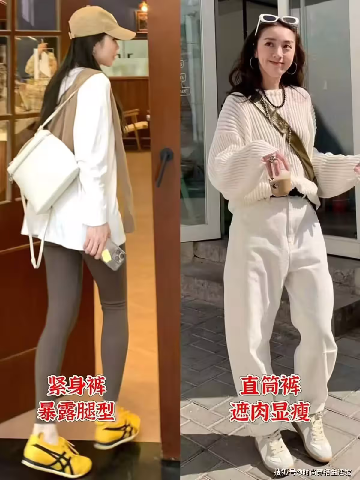 ⑵緊身褲暴露腿型,直筒褲包容腿型好駕馭