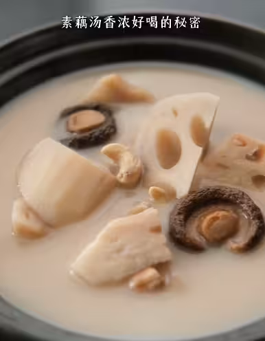 食材:蓮藕1節、干香菇3朵、腰果10粒、鹽、芹菜末少許。