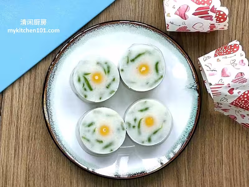 5 放入冰箱冷凍20分鐘,或直到完全凝結。完全凝結後,把燕菜餡脫模。