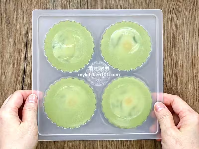 4 完全凝結後,即可把Pandan燕菜月餅脫模。