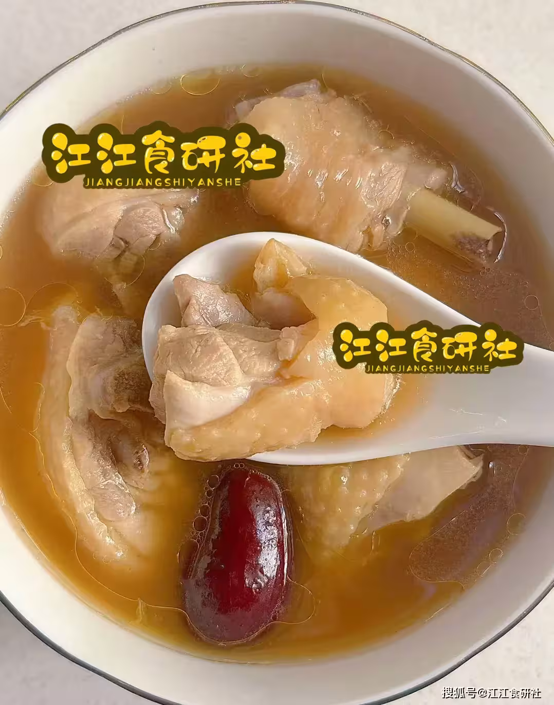 再講阿膠黃芪黨參當歸玉竹雞湯:更年期容易氣血不足,臉色差、手腳涼,阿膠、當歸能幫著補氣血,黃芪、黨參還能提氣,搭配雞肉補蛋白,喝著不燥不膩。關鍵是不用放太多阿膠,一小塊就夠,避免上火,平時一周喝 1 次,氣色慢慢就亮起來了。