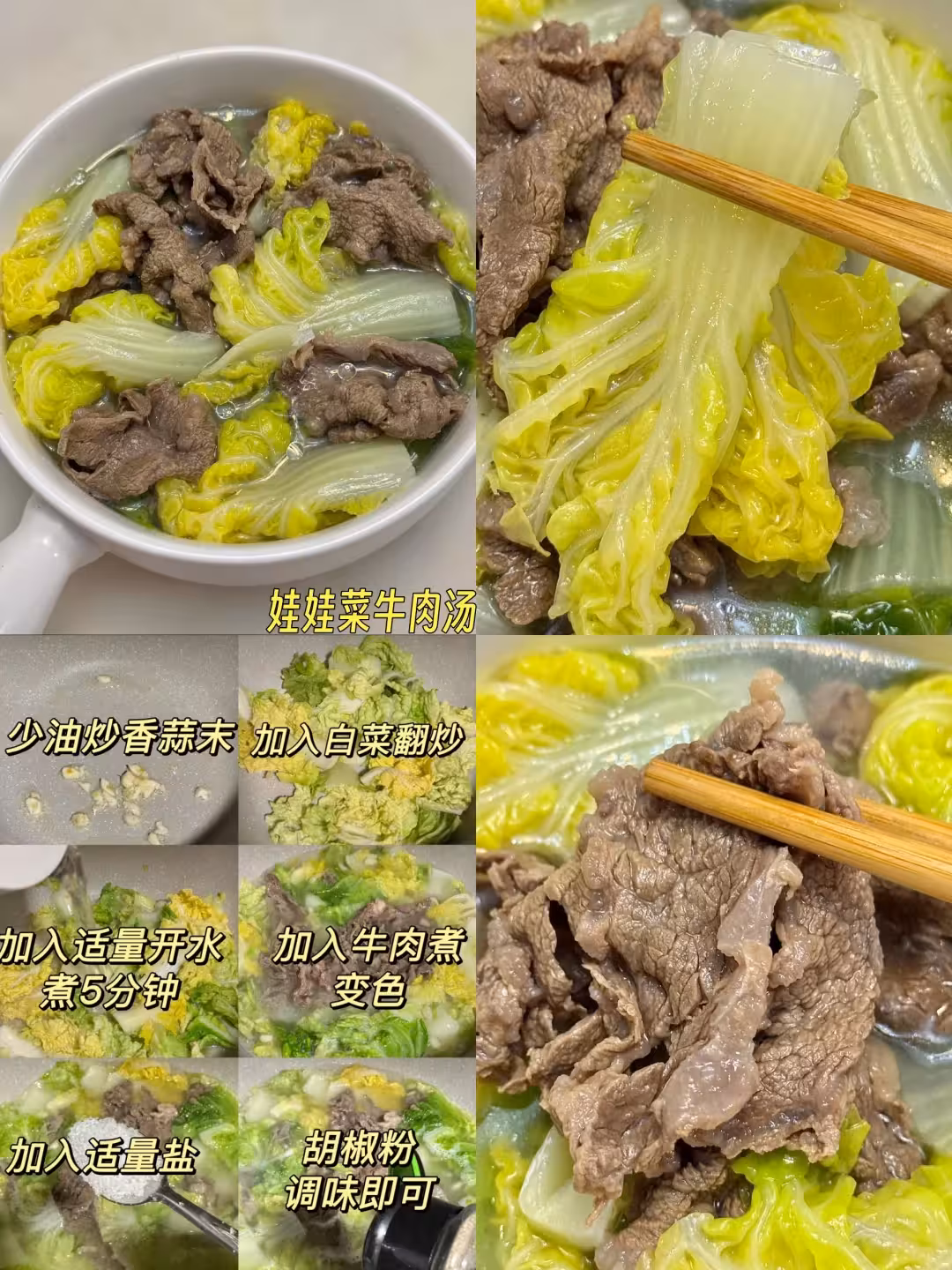 ✅第七款:娃娃菜牛肉湯 準備食材:娃娃菜、牛肉、蒜末 配料:食鹽、胡椒粉