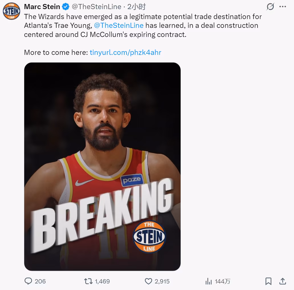 Marc Stein還表示,特雷楊預計會執行下賽季4900萬美元的球員選項,不會尋求今年夏天續約,以便能更快幫自己找到下家。為了說服奇才接納特雷楊的大合同,老鷹可能要在交易中搭上選秀權。也就是說,特雷楊已經成了負資產!