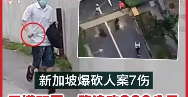 新加坡爆砍人案7傷 男嫌雙刀一路追砍900米遭眾人制伏