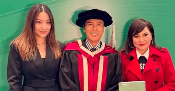 甄子丹獲頒博士四代同堂,汪圓圓陪婆婆出席,合照站旁邊識大體