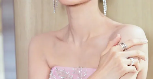 迪麗熱巴一襲銀灰抹胸長裙,宛如美神降臨現實,太美了