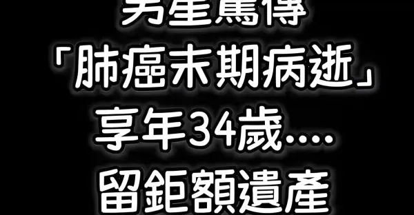 男星驚傳「肺癌末期病逝」留下數百萬遺產! 享年34歲!R.I.P