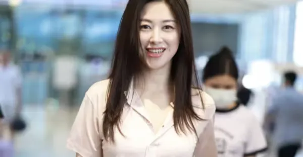 朱珠機場穿搭太絕了!淺粉上衣配半裙,復古又優雅好吸睛