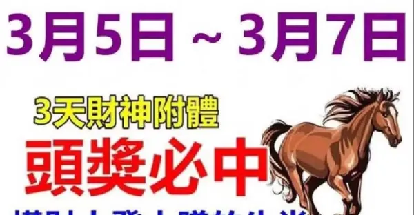 3月13日 財運一馬當先,恭喜「 6生肖 」 鈔票滾滾來!!