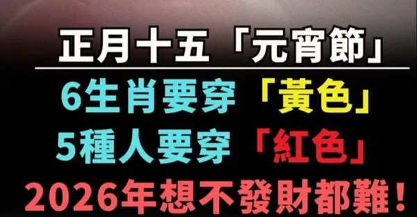 3月3號正月十五「元宵節」:6生肖要穿「黃色」,5種人要穿「紅色」,保你2026一整年事事順心,好運一整年!!